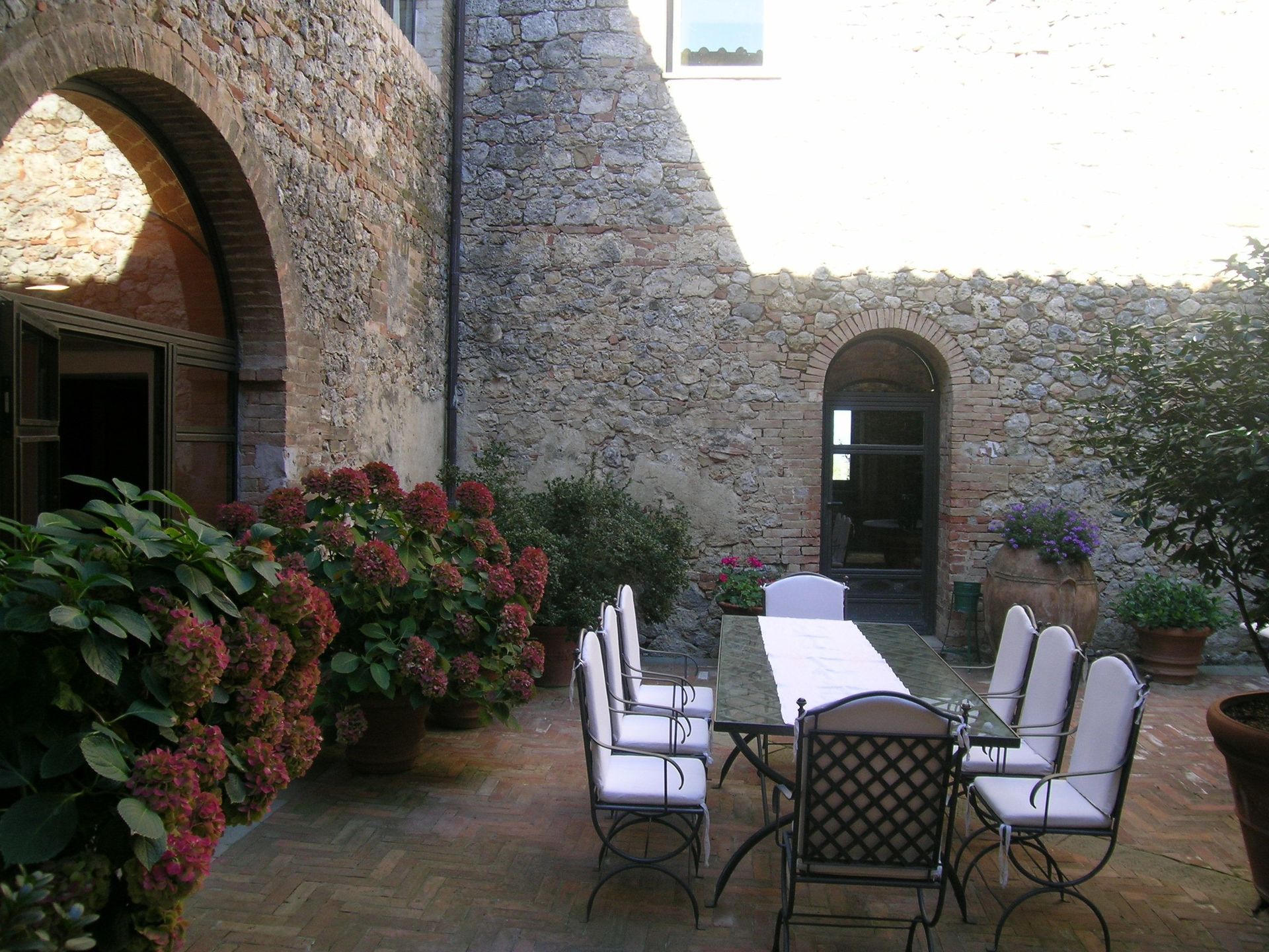Appartement (4 pers.) in het bijgebouw, alleen samen met het hoofdgebouw te huren (prijs op aanvraag). De inrichting is zeer comfortabel, met tevens enkele antieke stukken Het huis ligt om een mooie binnenplaats waar men heerlijk buiten kan eten en biedt een grote goed verzorgde tuin met bloemen en planten en een mooi panoramisch gelegen privé zwembad.