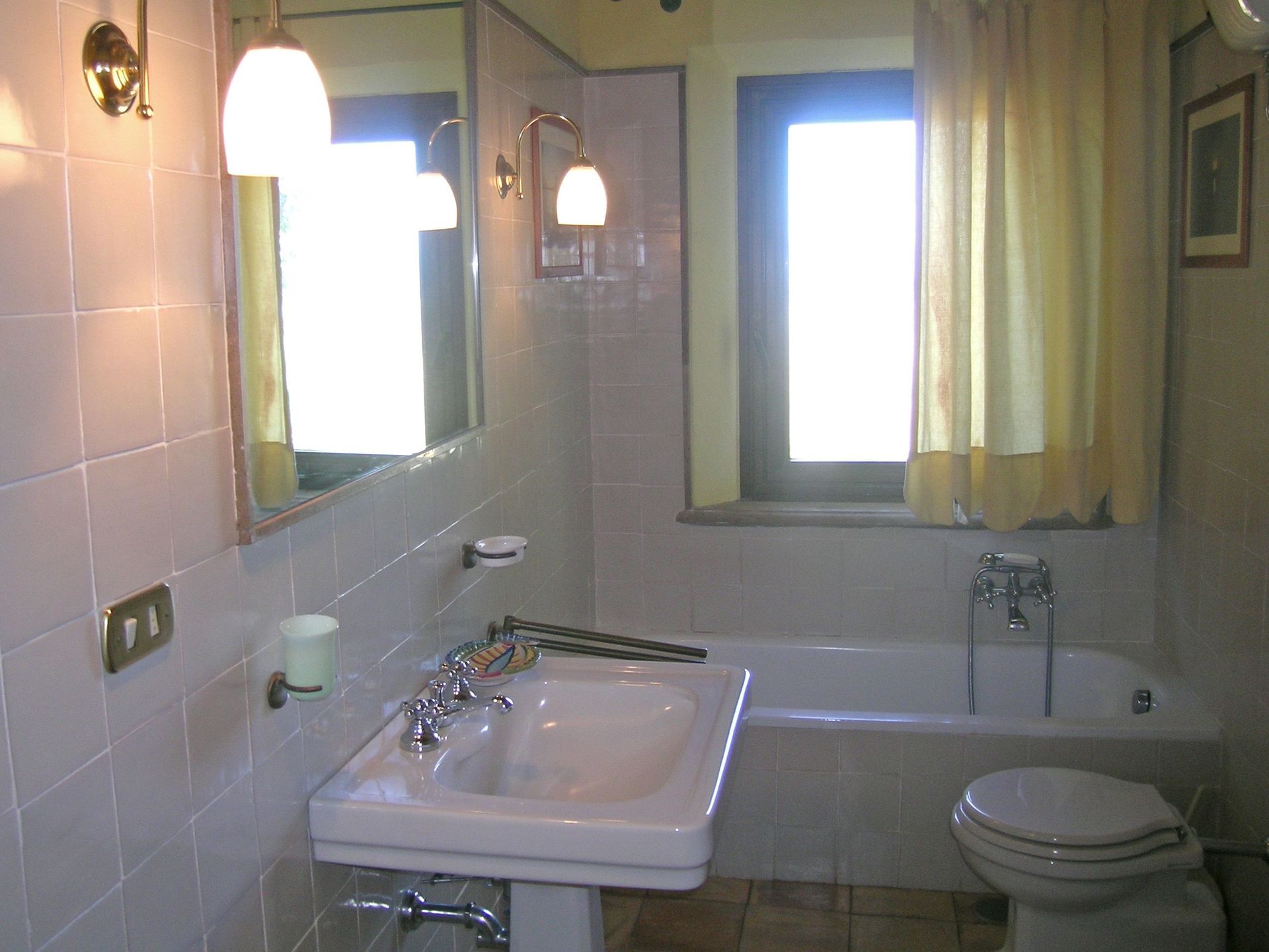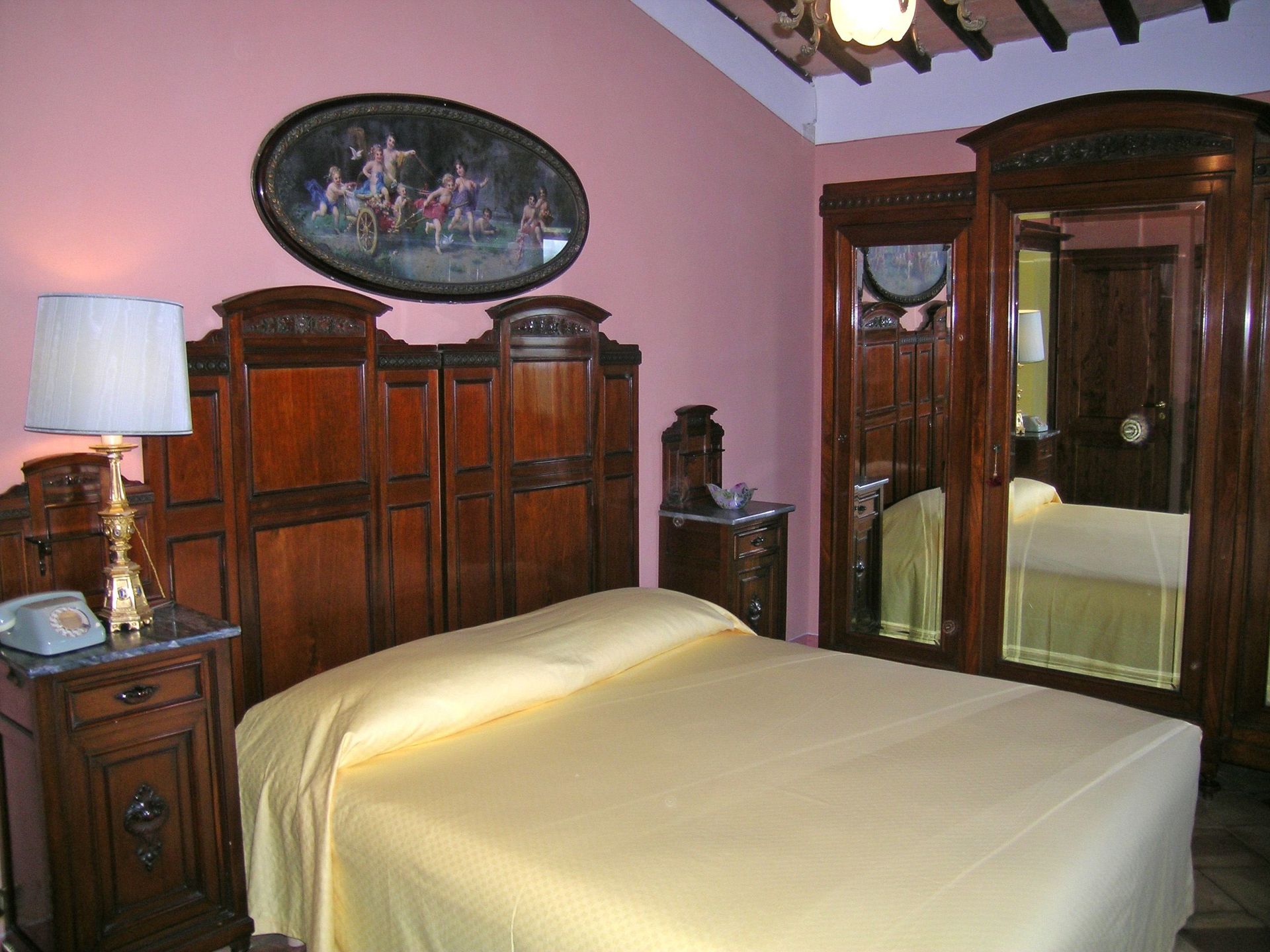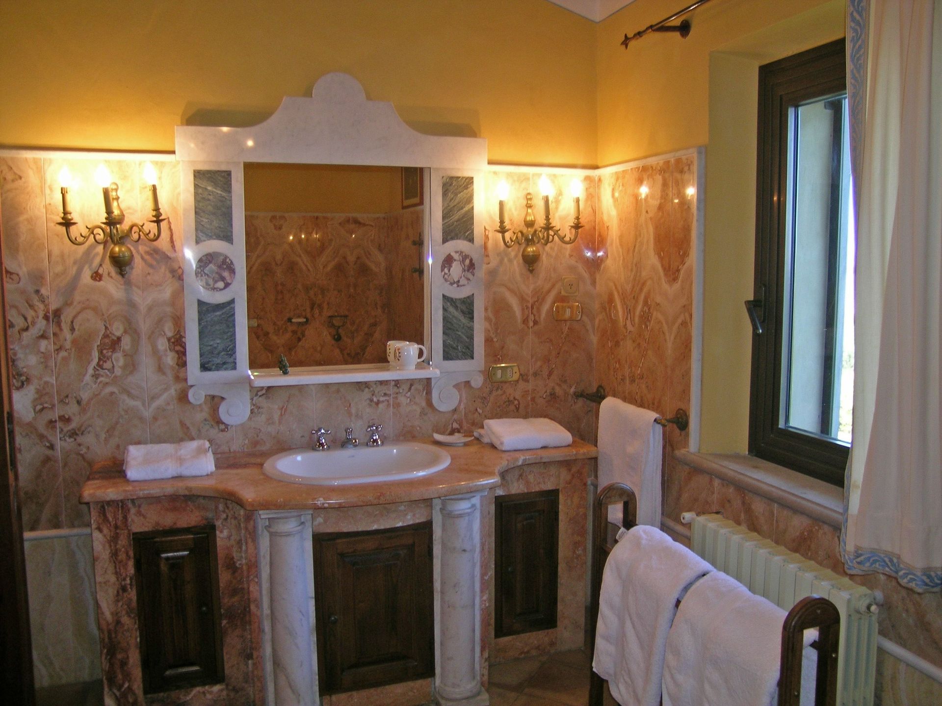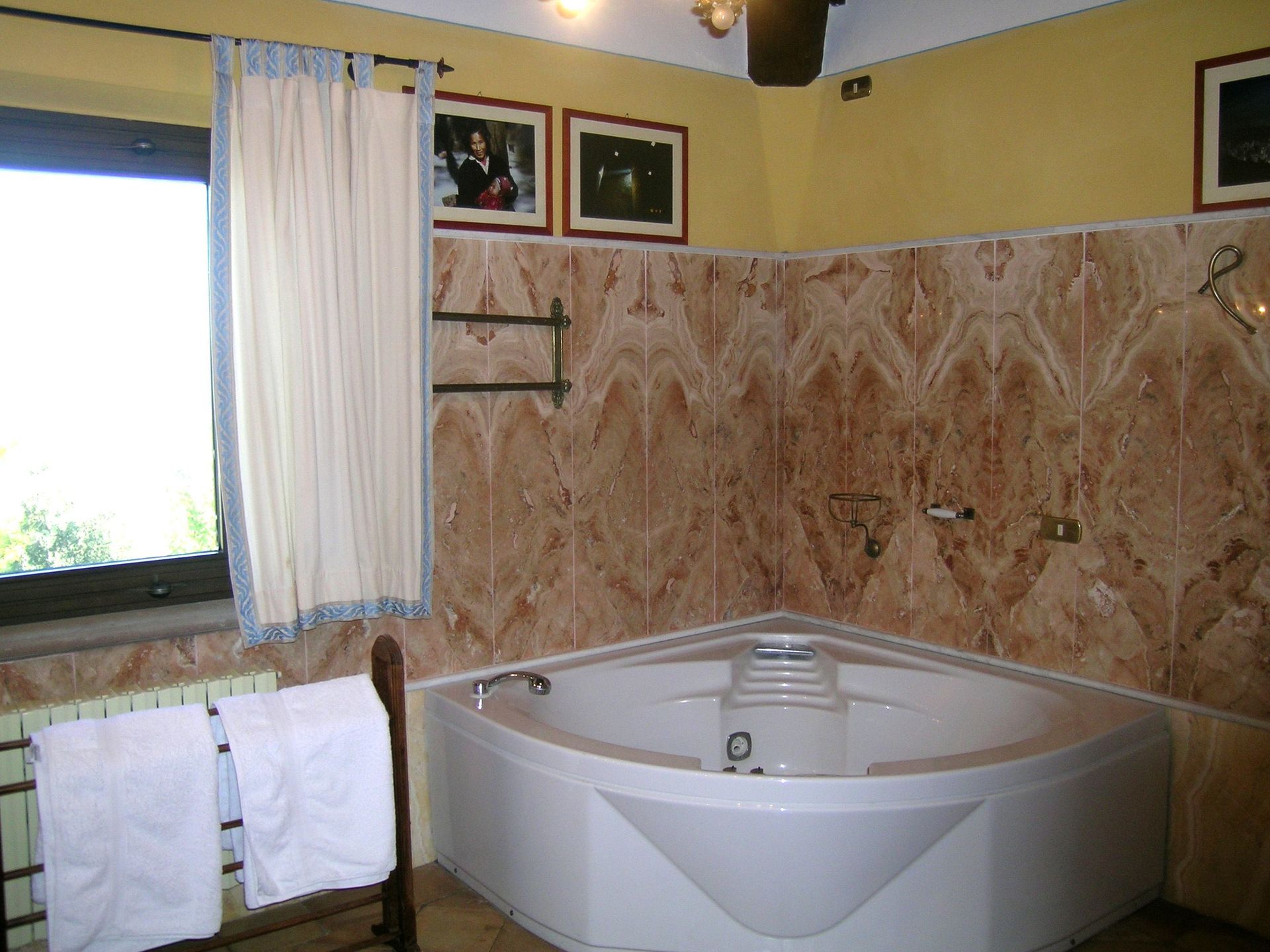 1° verdieping: grote en lichte woonkamer (sat-TV, computer met internetverbinding en fax), grote suite met tweepersoonsbed met zithoek, open haard, sat-TV, toegang tot een kamer met piano, garderobe en grote eigen badkamer met hydromassage hoekbad, slaapkamer met tweepersoonsbed met open haard en eigen badkamer met bad, slaapkamer met tweepersoonsbed met eigen badkamer met hydromassage douche, 4 slaapkamers met tweepersoonsbed, 2 badkamers elk met bad (zonder raam).