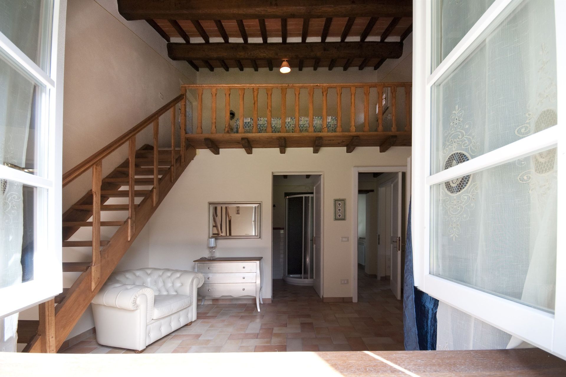 The owner, Raffaello, has recently refurbished and enlarged the villa to a very high standard in 2010 and have thoroughly dedicated himself to the attention to details. Villa Sorbello lies through the 300 square meters of this sunny and charming Tuscan home and walk bare foot on the terracotta floors, cook using the fresh herbs found in the garden and use one of the many table sets found in the antique wooden side boards or cupboards.