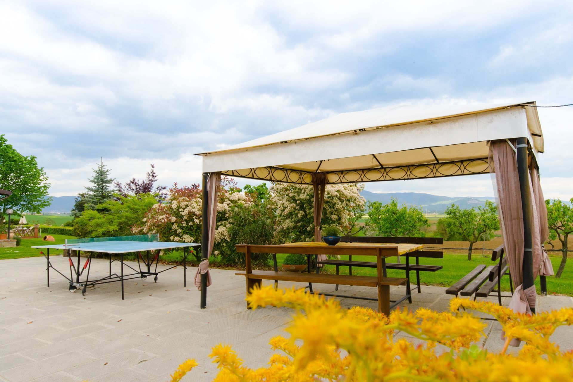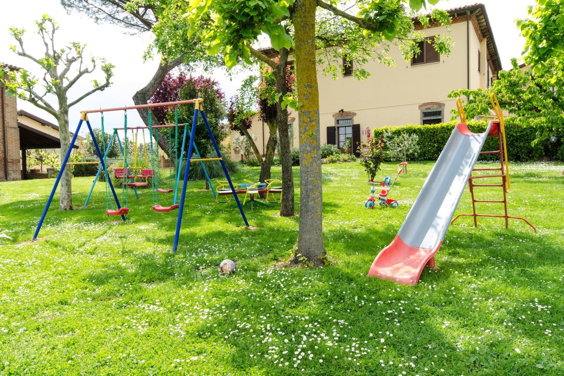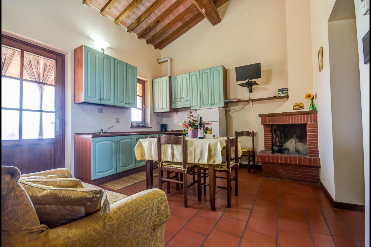 Services and specialty products of the farm. Around the houses there is a large garden equipped with outdoor furniture, bowling green, table tennis, playground for children, barbecue and a beautiful 6x12 m swimming pool (depth 1,40 m) used occasionally also by the owner. Possibility to taste and buy wine, olive oil, marmalades, products of the vegetable garden etc. directly on site. Breakfast and typical Tuscan dinner on request.