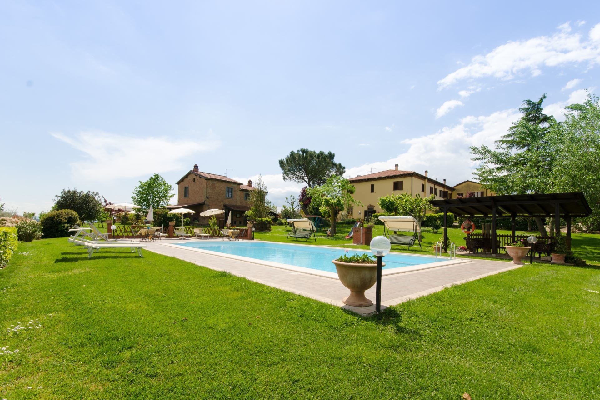 Hospitality in the Agriturismo. The property is composed by two beautiful farmhouses, each one divided in two independent holiday apartments. In the brick house are the apartments SOLE and LUNA in the other house are the apartments CIELO and STELLE, each with independent entrance, and 3 double bedrooms (Bed and Breakfast).