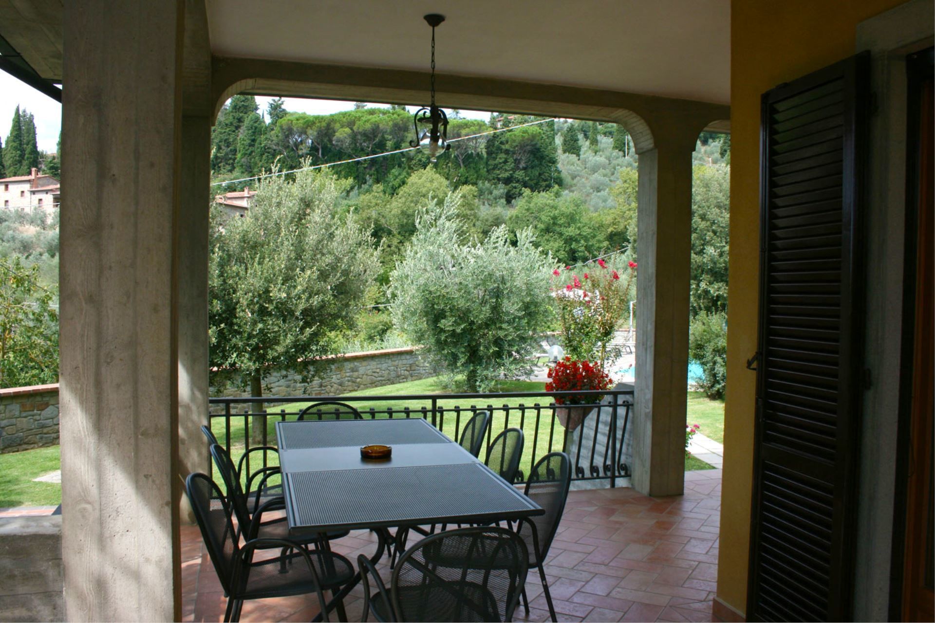 The equipped porch overlooking the valley. The beautiful porch at the front of the house, equipped with outdoor furniture, offers the possibility to eat outside while admiring the charming landscape of the Chiana Valley. Barbecue and private car spot inside the property. The furniture is well chosen and offer a good comfort.