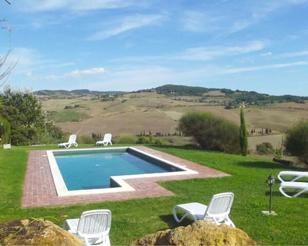 The most appreciated area of the villa is undoubtedly the swimming pool area (size 5x10 - depth 1,50 m. completely fenced). From here the view over the Val d'Orcia is something incredible. Hills with undulating movements are lost in sight, warm and relaxing colours of cultivated fields, vineyards, a postcard at any time of day and in any season. In the large outdoor area you will also find a barbecue, a wood-burning oven and a characteristic gazebo ideal for eating outdoors in front of the panorama.