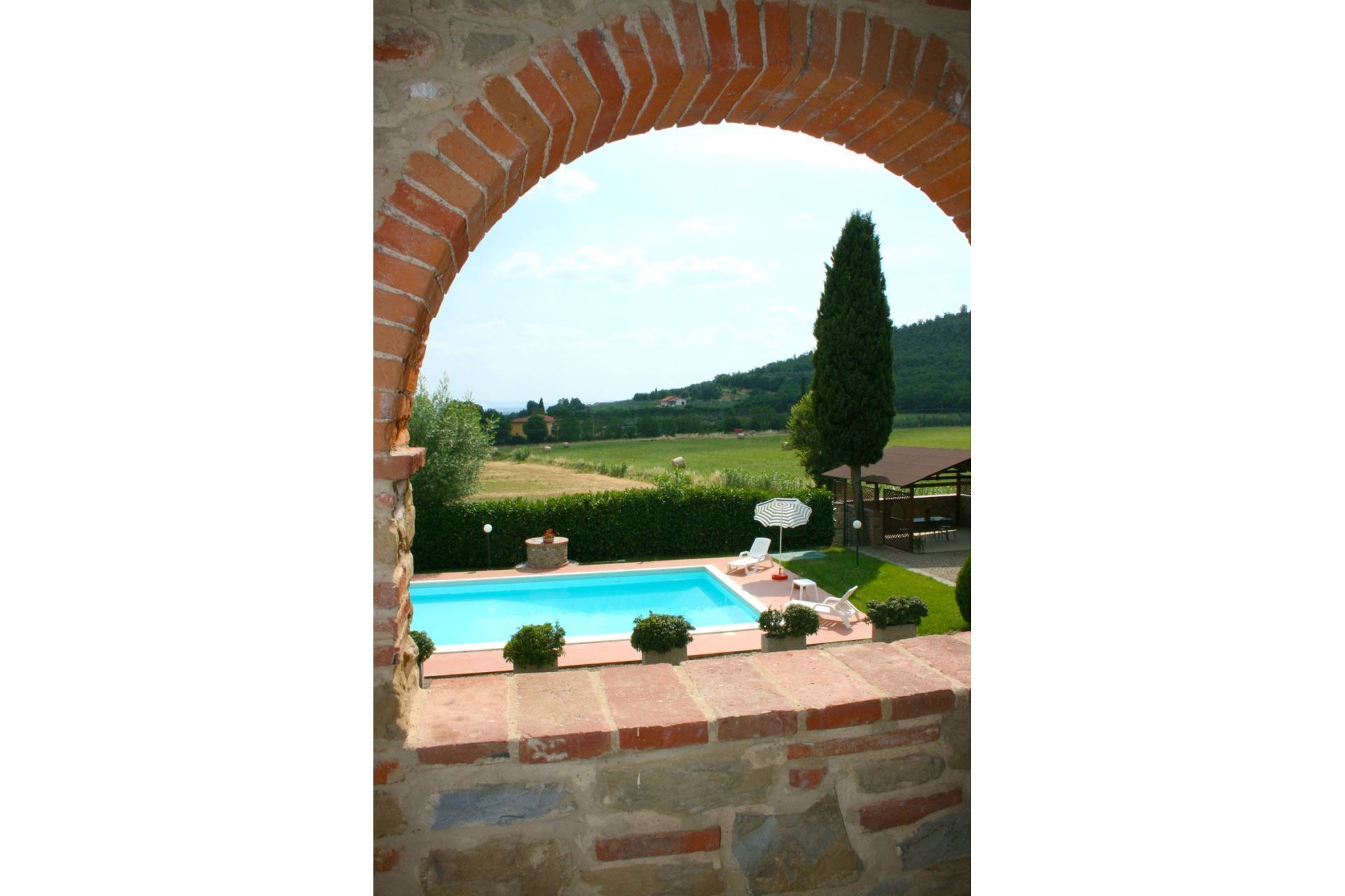 Sweet hills in the Tuscan countryside. Il Pasqualino is an old farmhouse with typical Tuscan architecture located at the foot of high hills in the sweet and fertile Valdichiana. At 3 km is the village of Castiglion Fiorentino, with its alleys, churches and ancient residences, endowed with every service and ideal when you wish to spend a pleasant evening. A few steps from the house, reachable on foot, there is a restaurant that offers typical local dishes and the famous Chianina meat. The city of Arezzo, ideal destination for a day trip, is only 15 km away.
