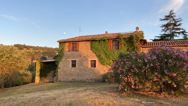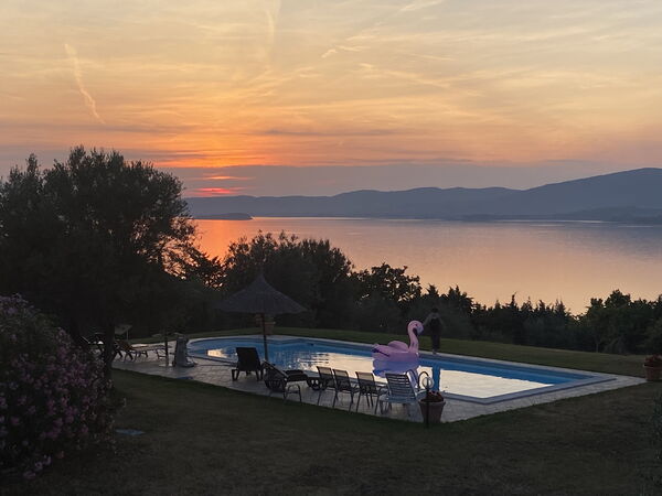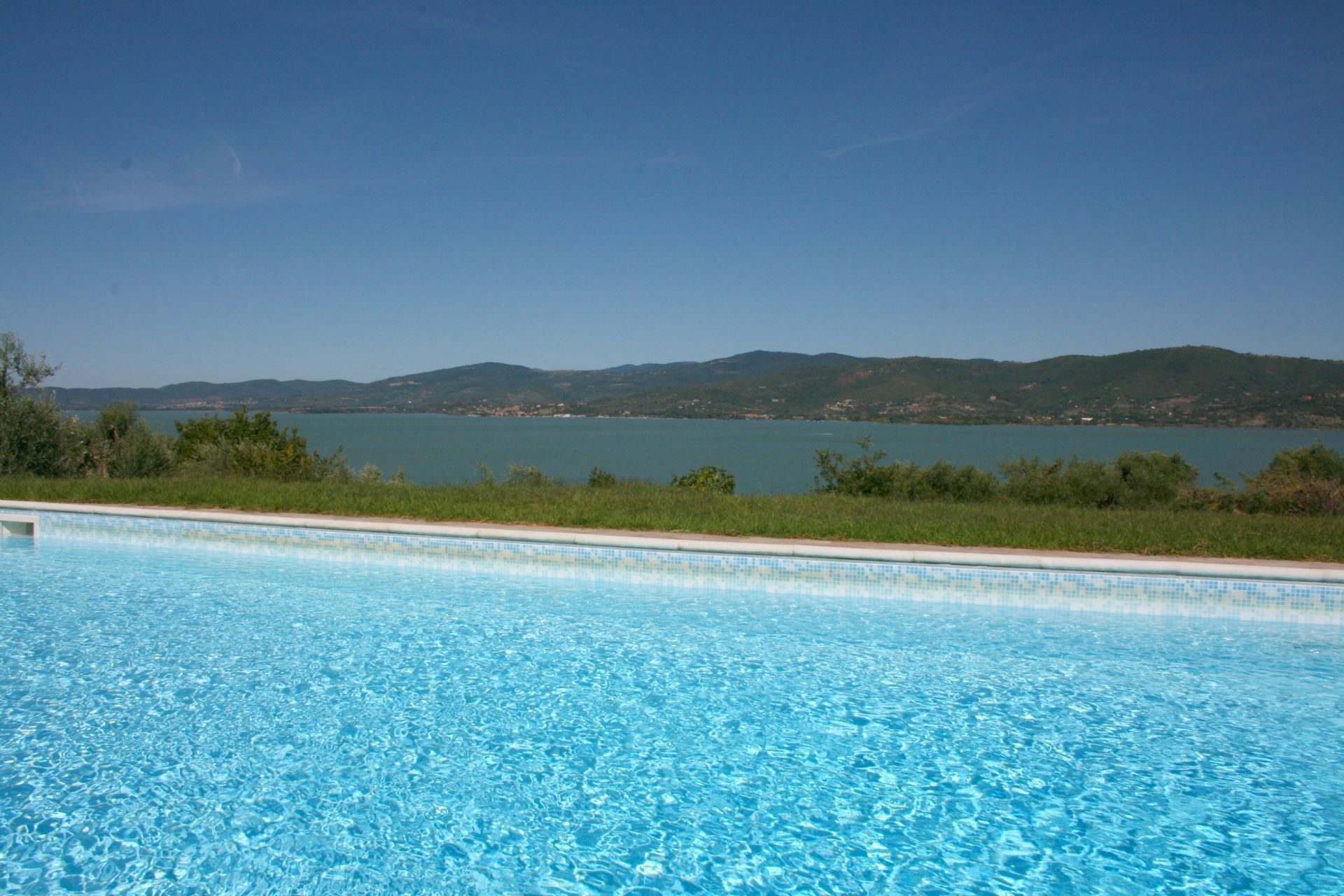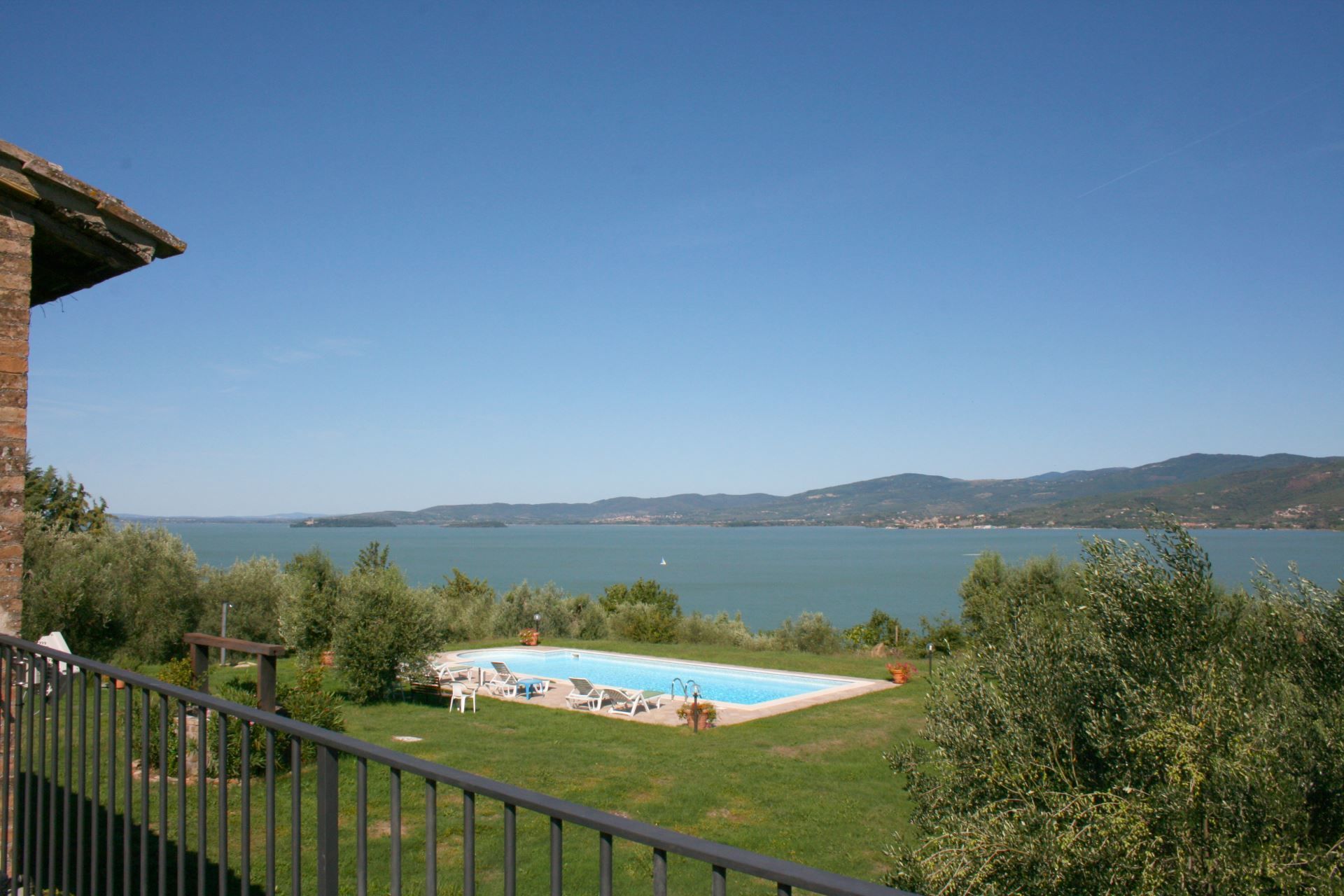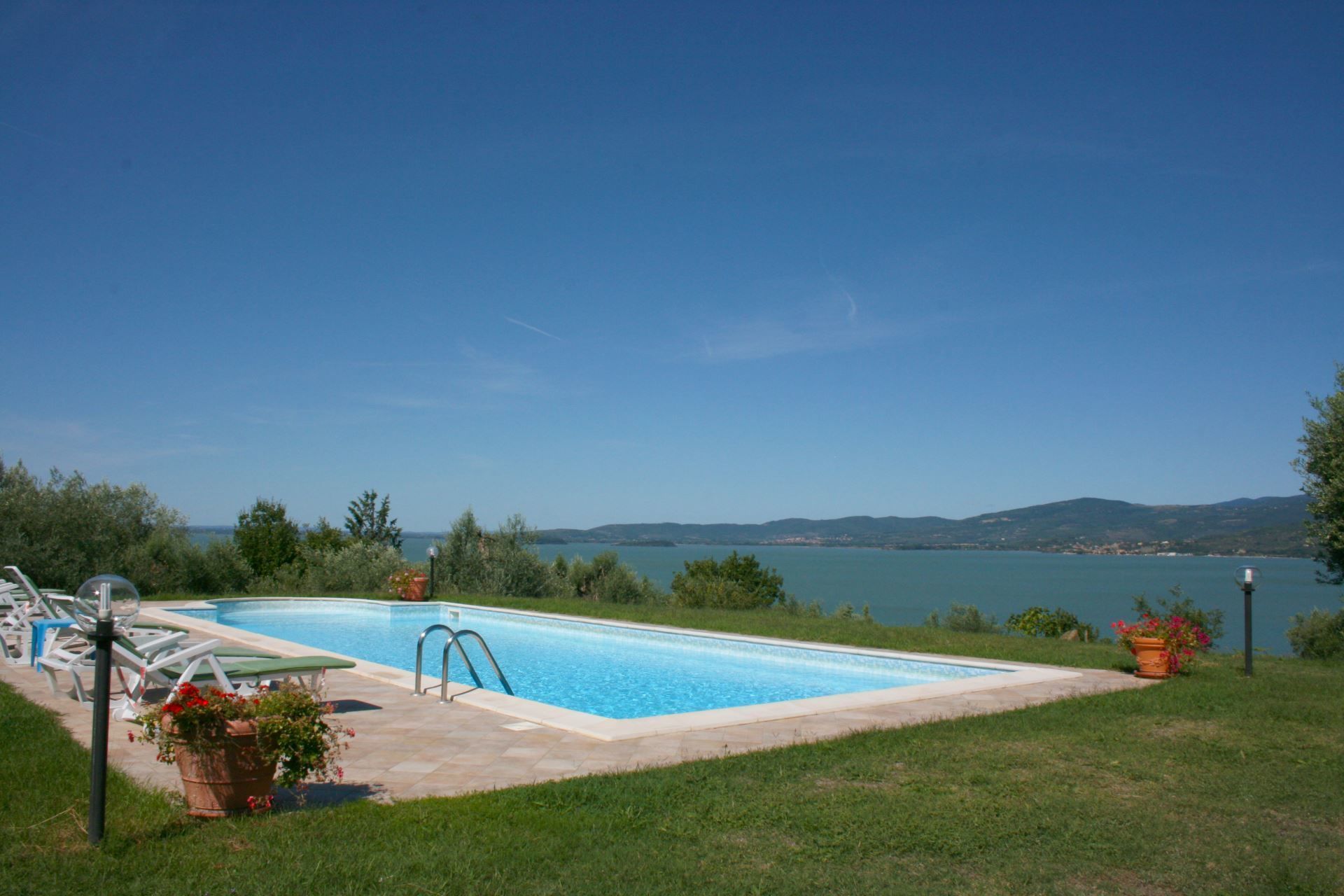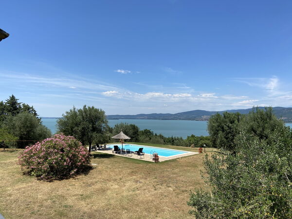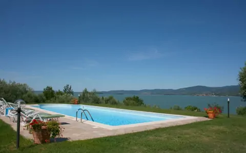 Monte del Lago is an old farmhouse in an extremely panoramic position, on the top of a hill covered with olive trees and overlooking Lake Trasimeno. The villa with its two sun terraces, the private swimming pool (size 5x12 m, depth 1,20-2,00 m - open from 01st May to 30th September) and the garden overlook the shores of the lake, and will give you a dream view every day...with silver waters, small and sleepy villages in the distance and boats gently cruising on the surface of the lake.