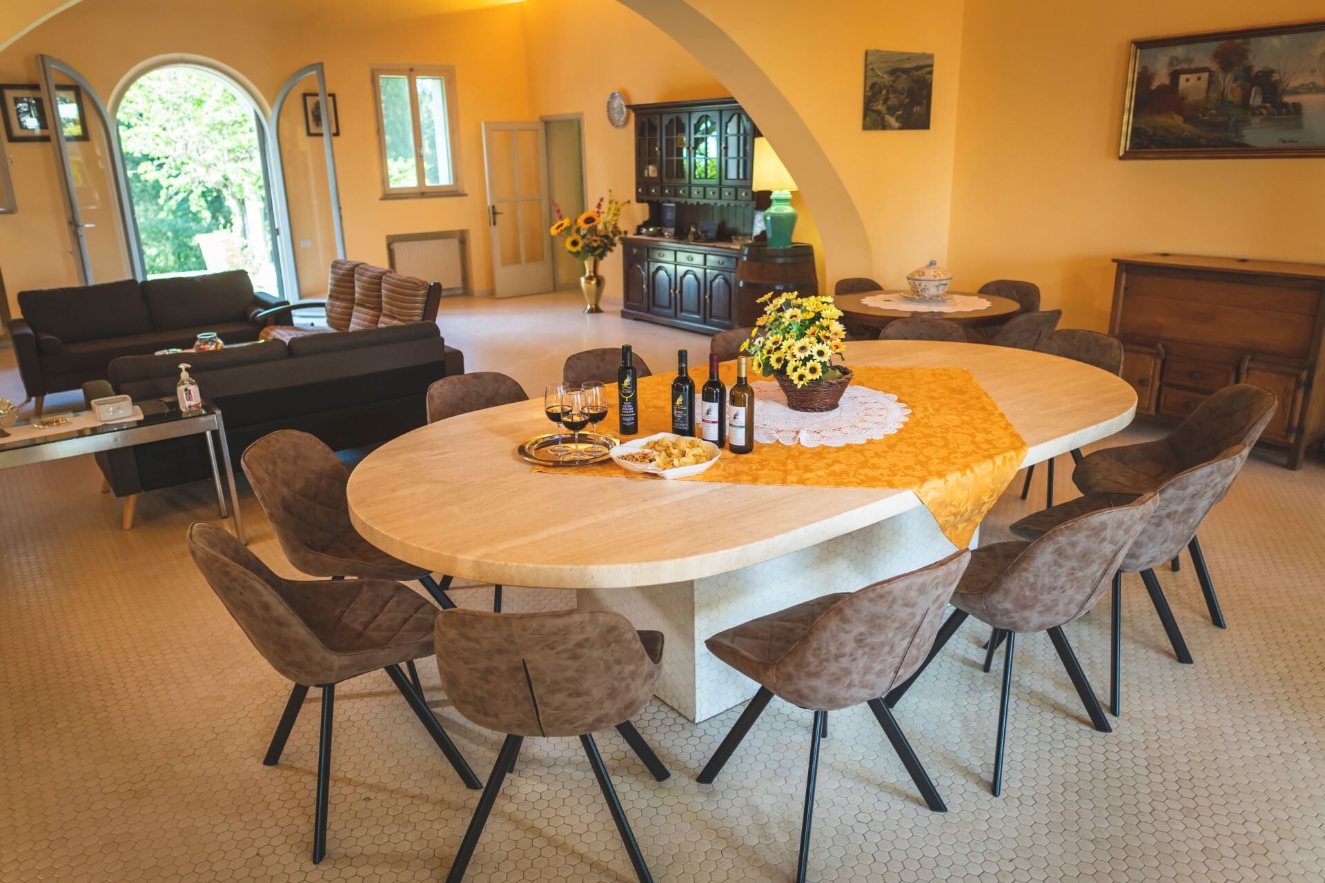 It won't be difficult to make families with children or groups of friends happy in such a beautiful location, combining interesting day trips with relaxing days around the large private swimming pool (size m. 6x12, depth m. 1.00-1.60 - open from 01st May to 30th September) with solarium equipped with sun beds, tables, chairs and umbrellas. Also next to the swimming pool there are Jacuzzi and Sauna (available during the whole year included in the rental price).