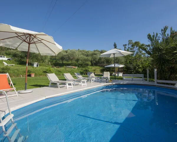 De buitenruimtes van "Olivo" omvatten een terrastuinen op het natuurlijke landgoed van 10.000 m2, met zacht hellende niveaus die het authentieke karakter van het Italiaanse platteland weerspiegelen. De privétuin van 500 m2 biedt een intieme en goed onderhouden groene ruimte voor ontspanning in volledige privacy. Het zwembad meet 7 x 3 meter met een diepte van 120 cm en is beschikbaar van mei tot oktober. Het terras van 50 m2 is voorzien van tuinmeubilair, geschikt voor buitendinen en ontspanning.