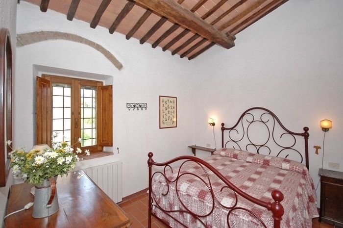 1° verdieping: ruime woon/eetkamer met open haard, tweepersoonsbedbank en kookhoek (oven, ijskast 140 lt), slaapkamer met tweepersoonsbed, zolderkamer met 2 eenpersoonsbedden en toegang tot een overdekt terras.