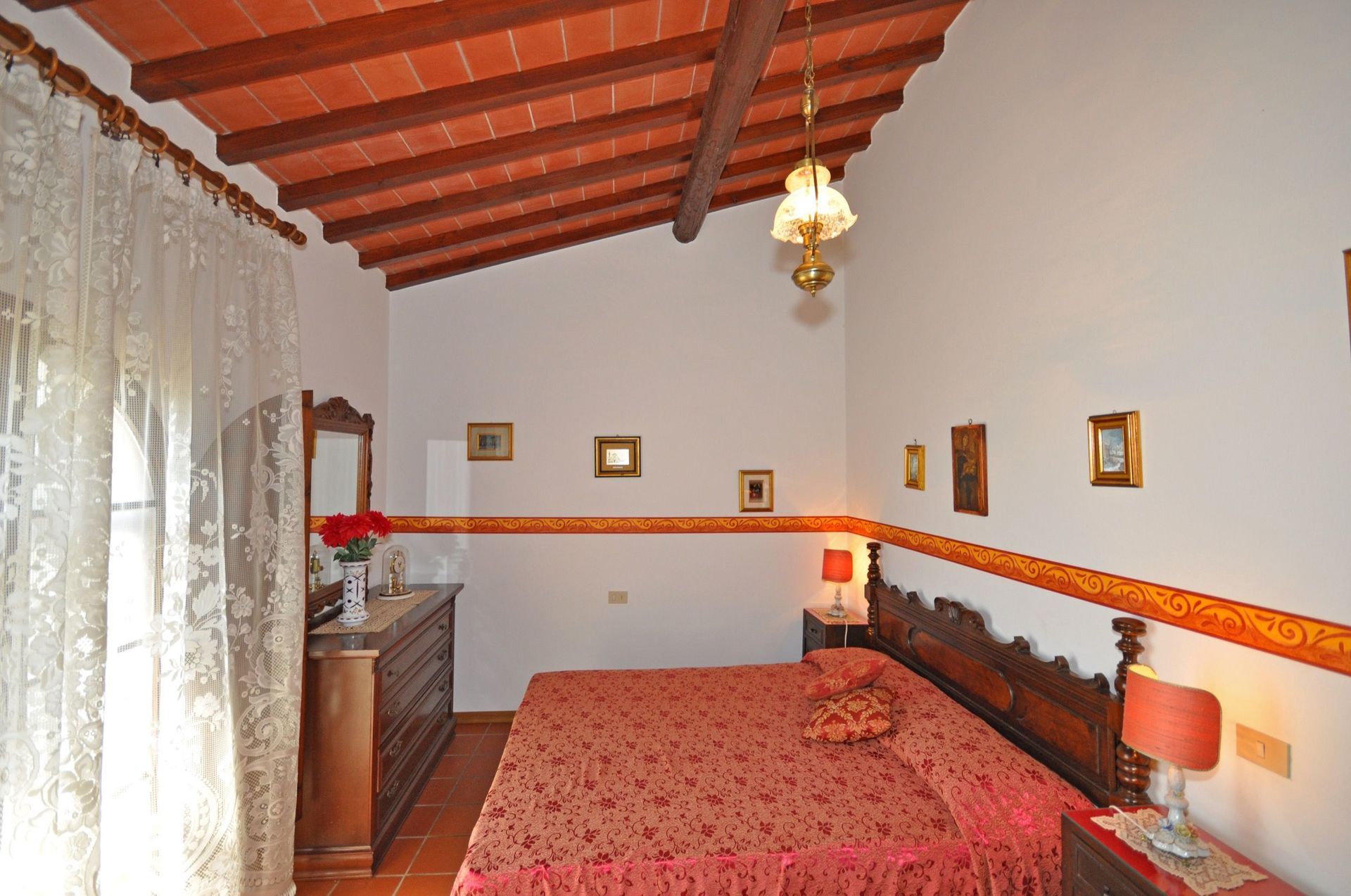 Comfortabel huisje, hoog gelegen op een klein landbouwbedrijf (productie van olijfolie) met mooi uitzicht over de omliggende heuvels, over het dorp Montelupo Fiorentino en de Arno vallei. Er is een groot antiek boerenhuis dat met zorg gerestaureerd werd en nu onderverdeeld is in 7 appartementen en een klein vrijstaand bijgebouw (Casa Vago) gelegen op ong. 50 m van het hoofdgebouw. Het huisje is comfortabel ingericht in landelijke stijl en beschikt over een eigen buitenruimte. Om het huis een groot park-tuin, gedeeltelijk met schaduw met eeuwenoude bomen en een zwembad, tennisbaan, barbecue en tafeltennis.