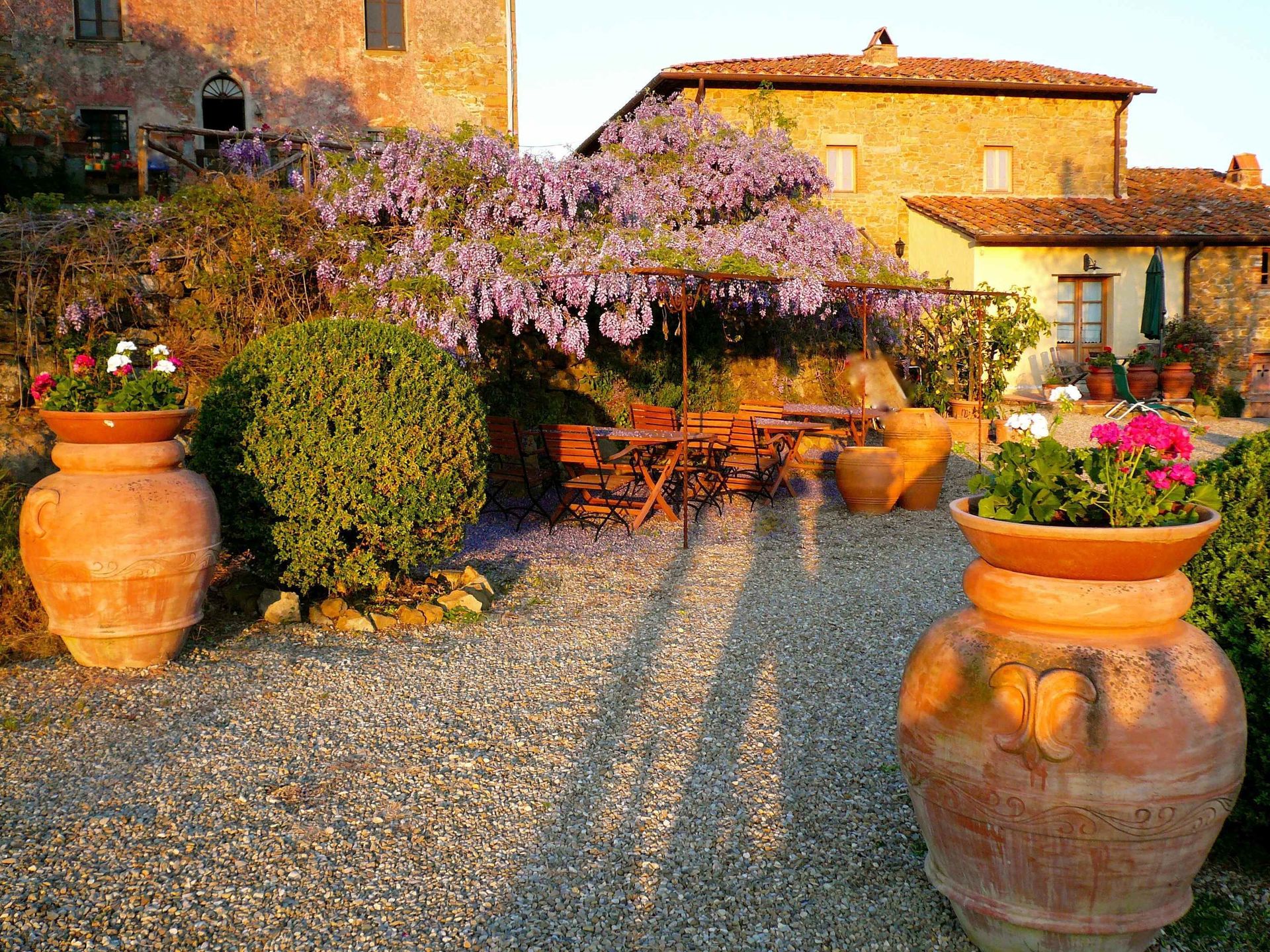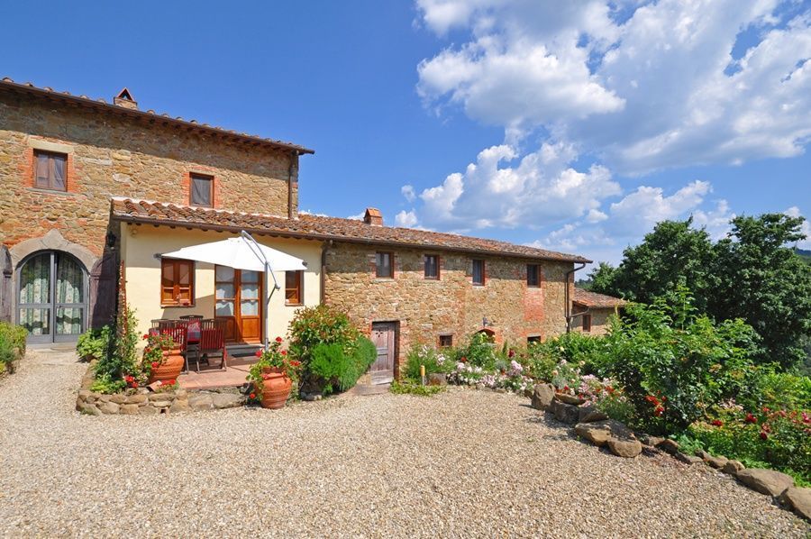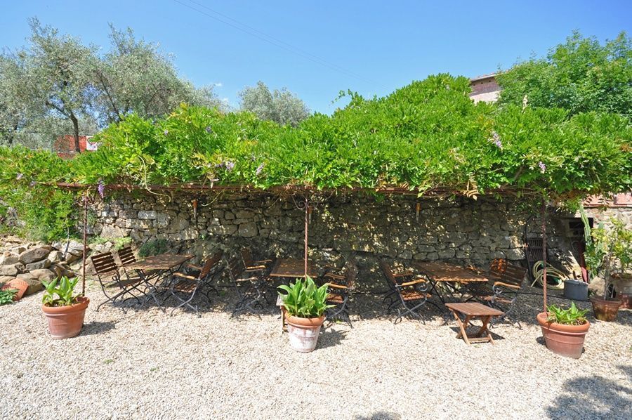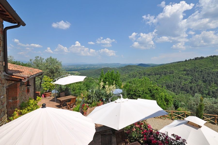 The topic of this romantic flat is the rose. Kitchen with dining corner, bedroom, bathroom with shower. Terrace with panoramic view of the Arno valley and Chianti Mountains.