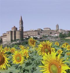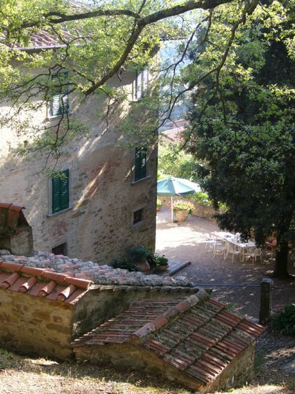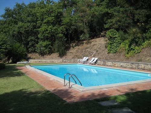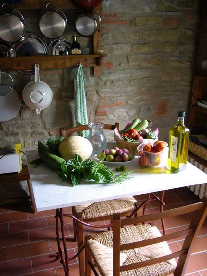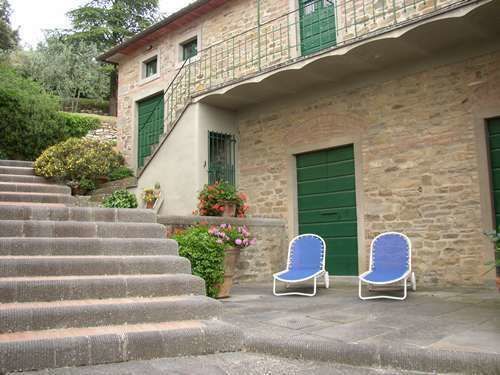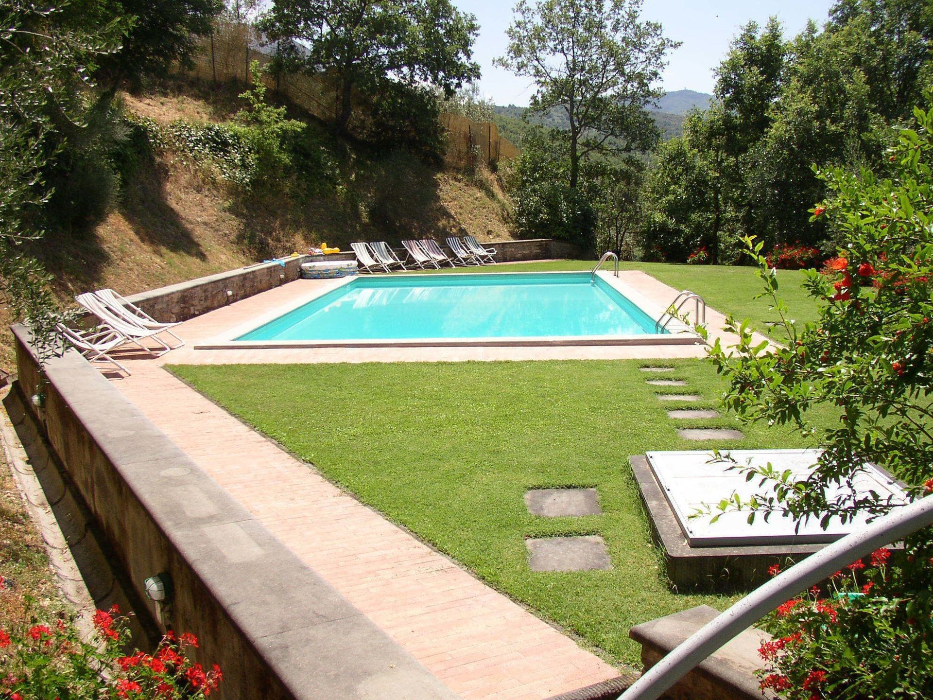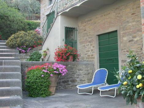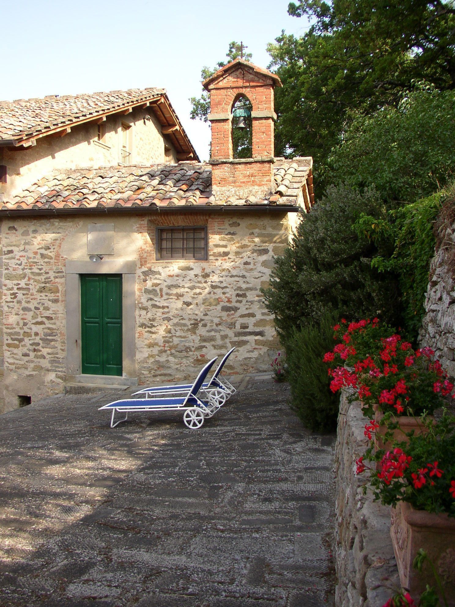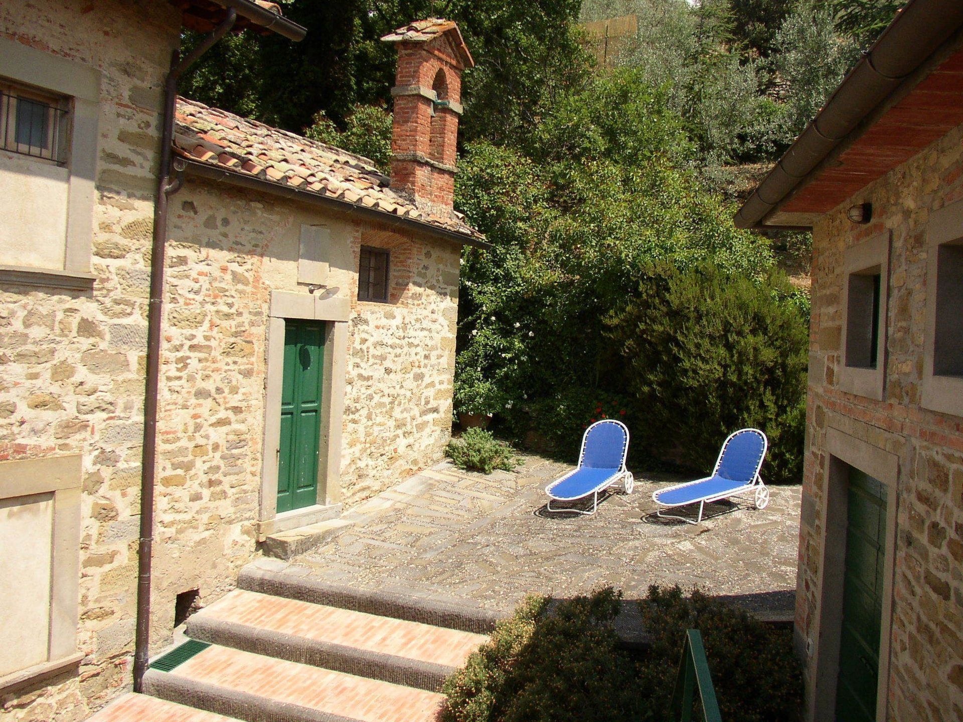 Terrace with table and chairs, deckchairs