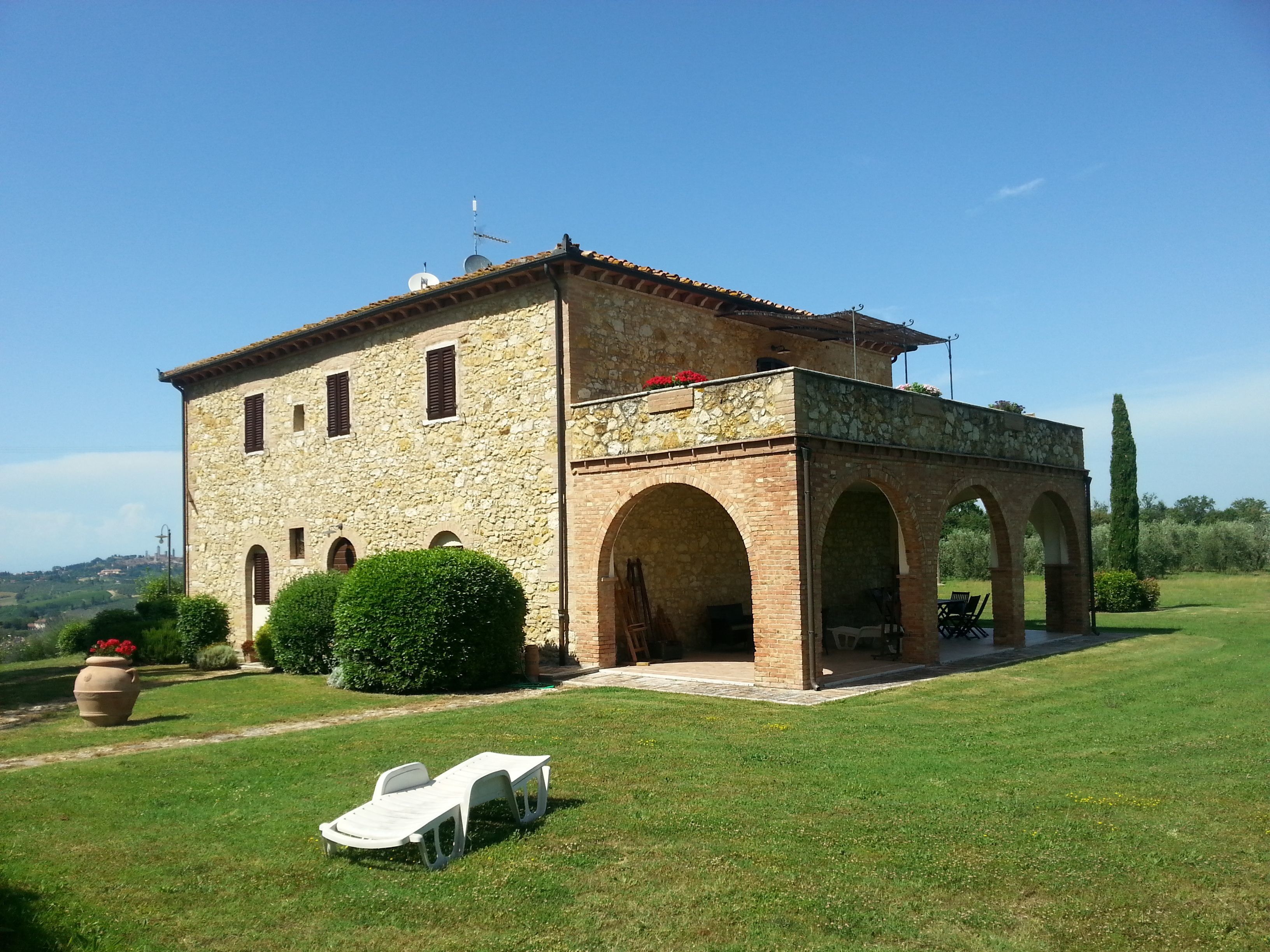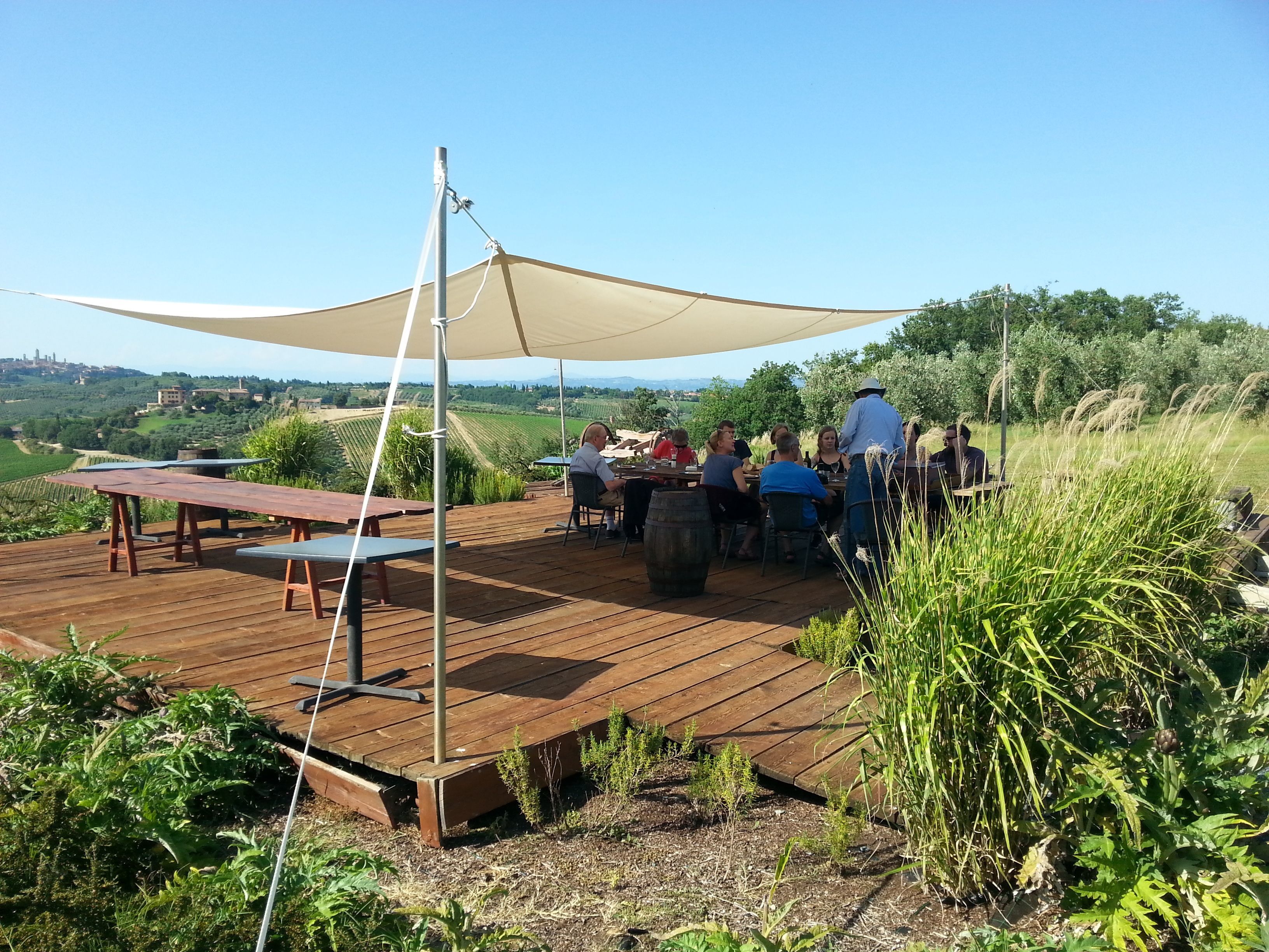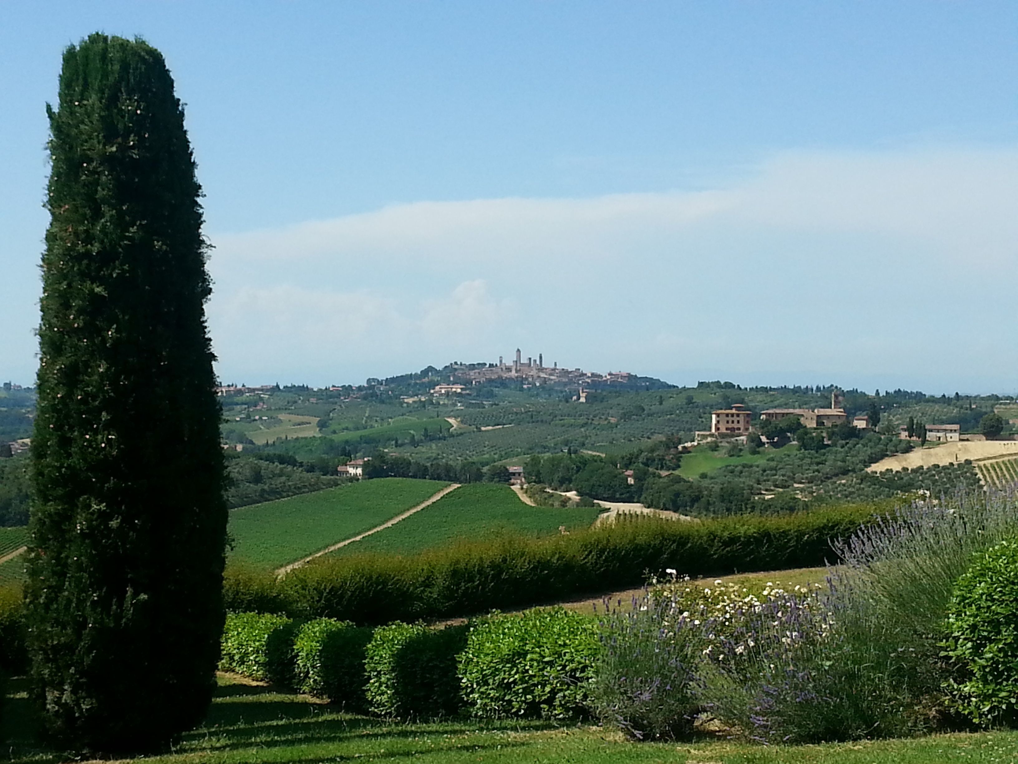 Gemeubileerde privé buitenruimte ( op 20 m.) met een schitterend uitzicht over het omringende landschap en San Gimignano.