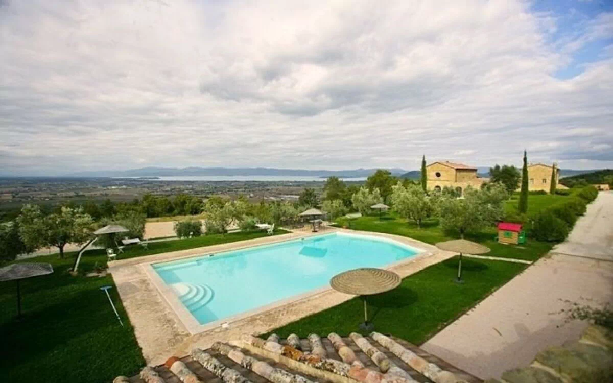It is located on a wooded hill beneath the Monte Pietrarvella, from which it is possible to admire the wonderful view of Trasimeno Lake and the surrounding mountains, with a glimpse between the old medieval villages of Paciano (1,5 km away) and Panicale.