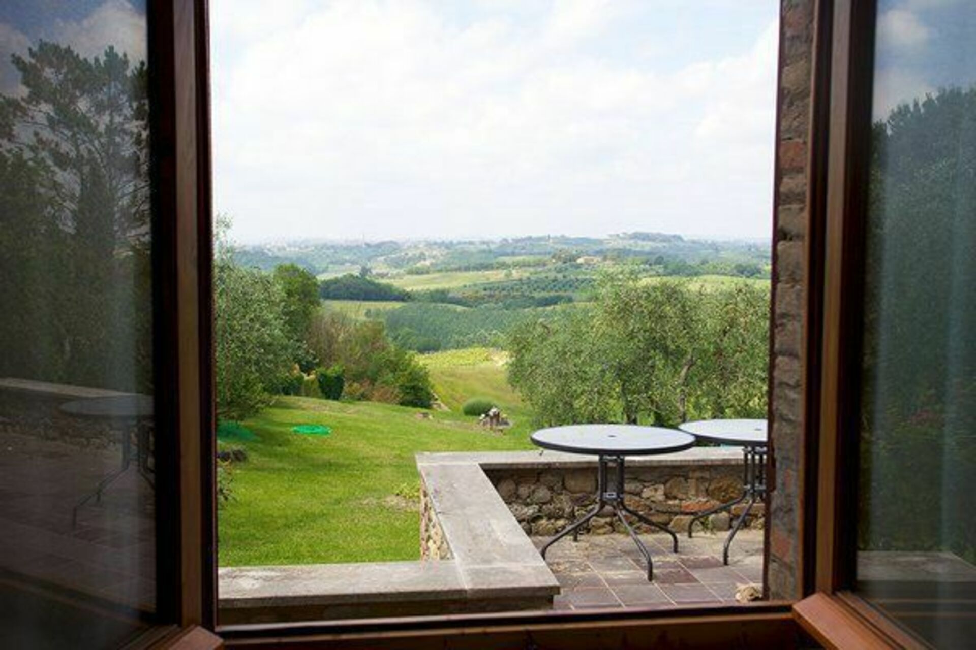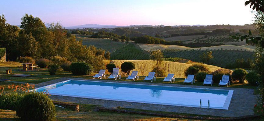 The views are outstanding, particularly the view of Siena in the distance and panoramic view of rolling hills with vineyards and olive groves.