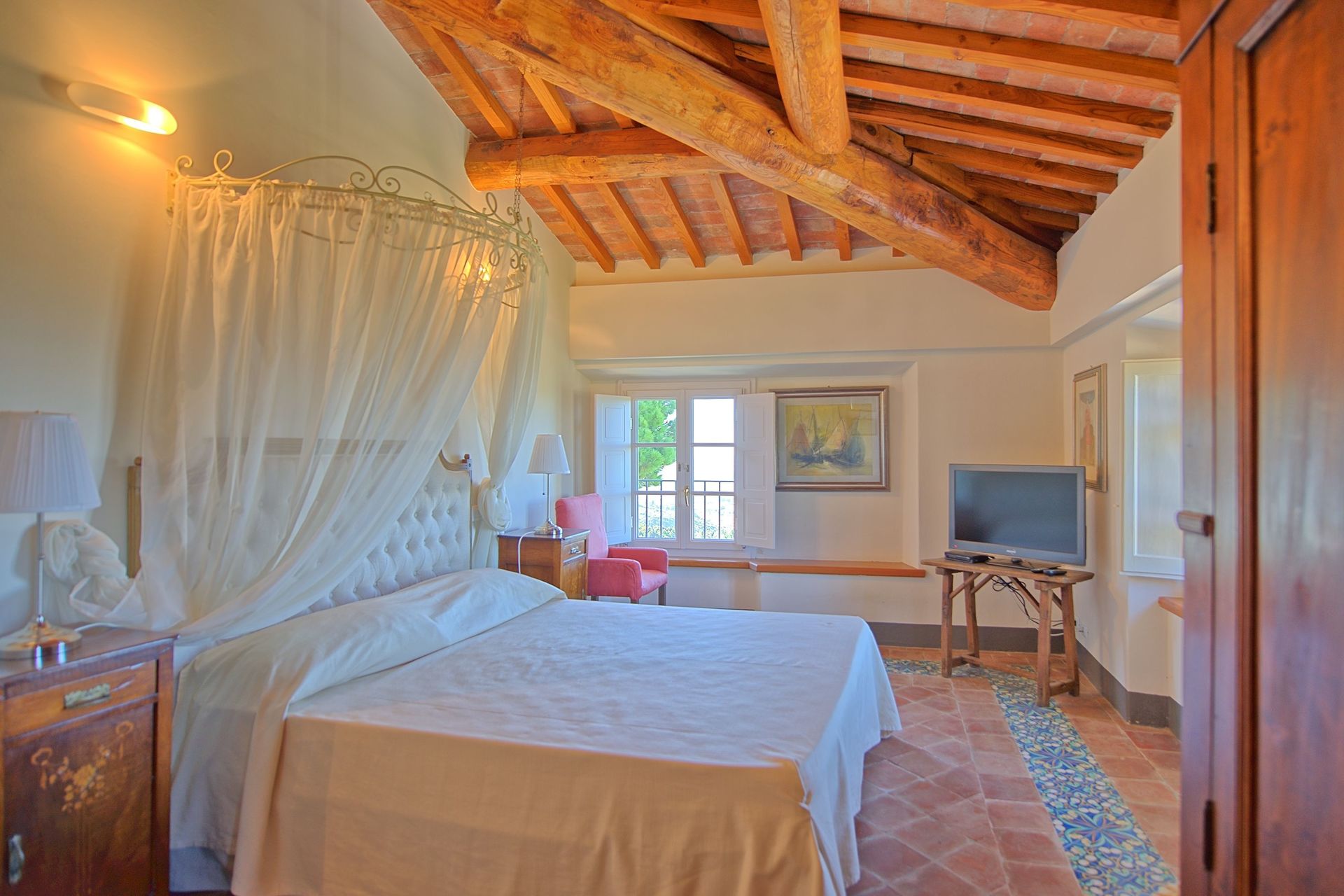 Mooie, 18de-eeuwse villa, hoog gelegen in de heuvels bij de kusstrook van Versilia. Deze villa biedt prachtige vergezichten over het omringende landschap tot aan de Toscaanse eilanden en de Cinque Terre-regio in de verte. De villa is onlangs gerestaureerd en is mooi ingericht met unieke meubelstukken, prachtige muurschilderingen en alle comfort. Er is een grote, goed verzorgde tuin van 8000 m2 met fruitbomen (mandarijnen, sinaasappels, kiwi's en peren), fonteinen en een groot panoramisch terras met een mooi prieel, ideaal om buiten te eten. Verder is er voor de gasten een privé zwembad.
