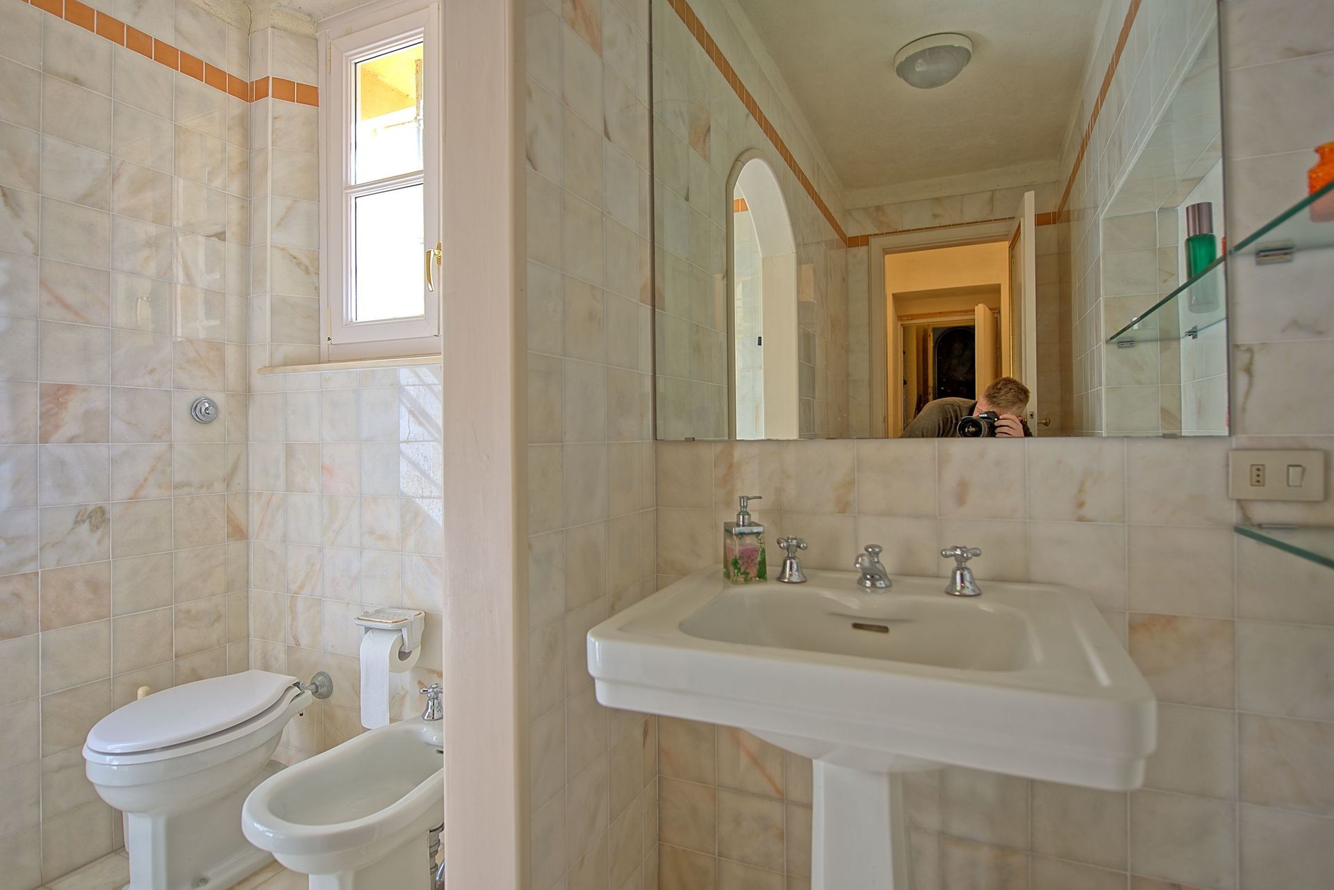 3 treden hoger: badkamer met douche.