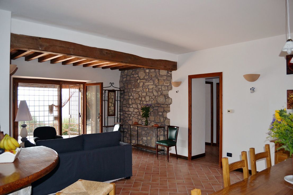 The unit VILLA MAIOR 130 sqm. ground floor, beautifully furnished in rustic style: spacious living room with large panoramic windows and fireplace, 1 double sofà bed, dining table, satellite TV and DGTV, CD and stereo, kitchen corner (5 hotplates, oven, dishwasher, washing machine, microwave, freezer).