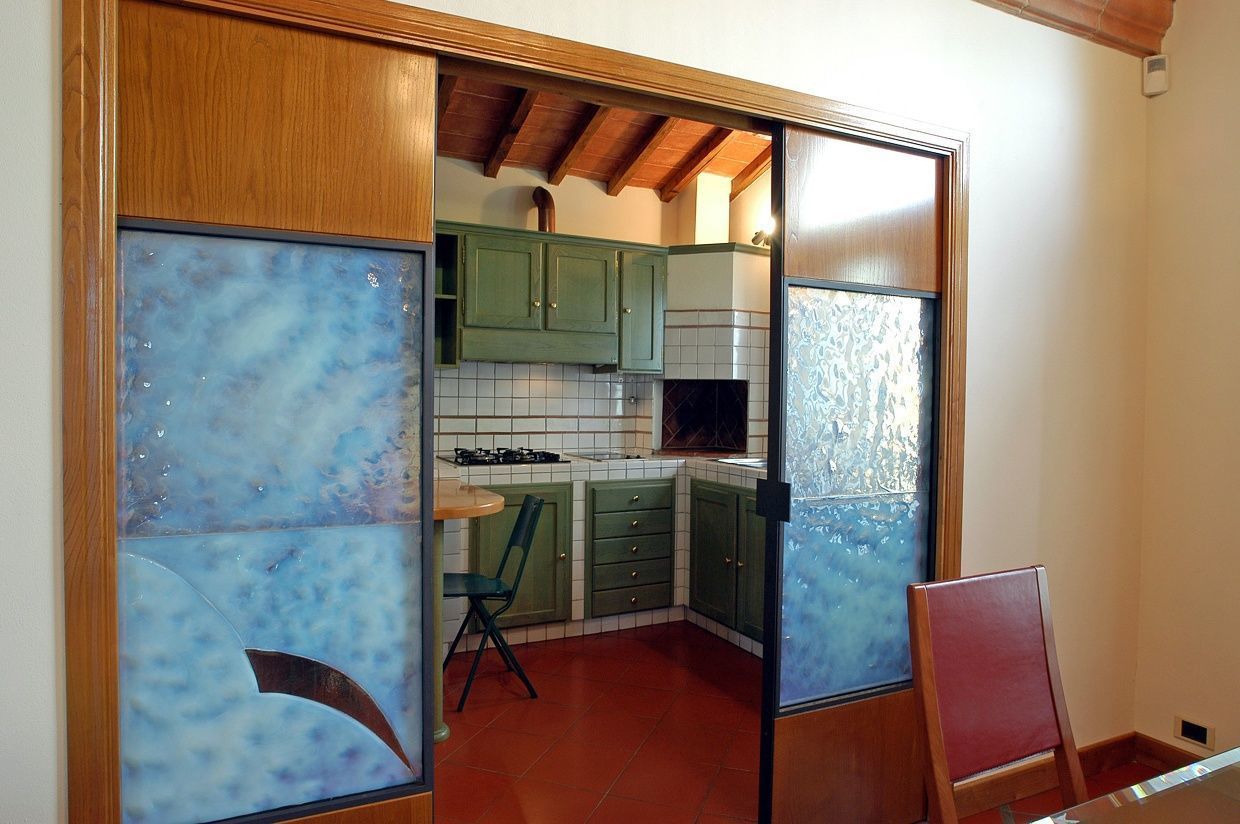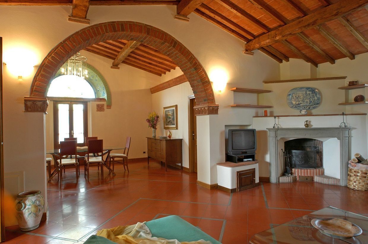 First floor: Entrance into living room (satellite TV) with fireplace, dining area and kitchenette (oven, dishwasher, barbecue, freezer), bedroom with French bed (suitable for one adult or two children), bathroom with shower and bathtub, double bedroom with ensuite bathroom with shower, twin bedroom, bedroom with three single beds.